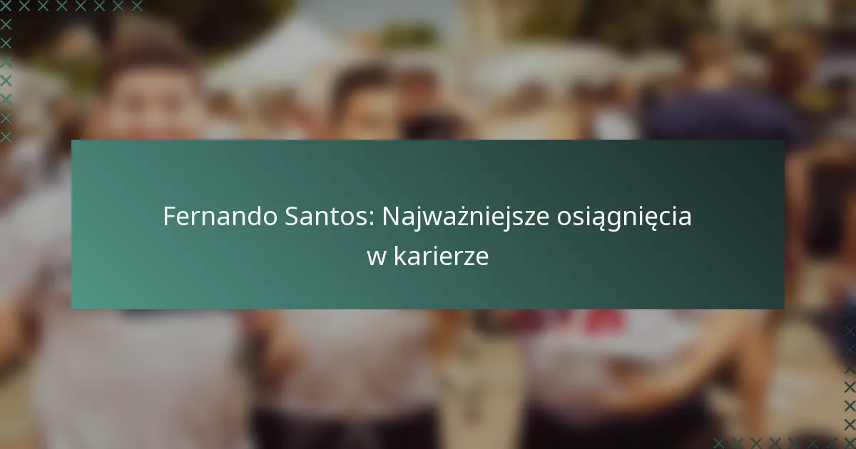 Kariera Fernando Santosa definiowana jest przez jego strategiczną biegłość i znaczące osiągnięcia, szczególnie podkreślone przez triumf Portugalii w UEFA Euro 2016. Jego zdolność do dostosowywania taktyk i motywowania zawodników doprowadziła do niezapomnianych meczów, które rezonują z fanami i analitykami.